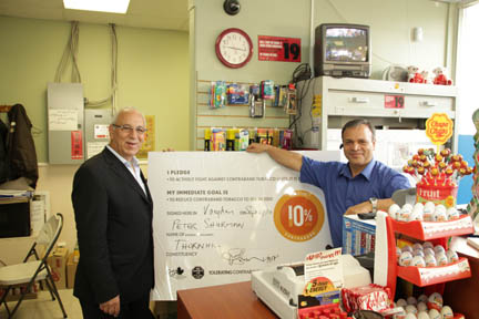(Thornhill) – Thornhill MPP and PC Critic for Economic Development and Trade, Peter Shurman was pleased to join Nader (Nick) Daliri, owner of Ocean Variety & Magazines convenience store to sign a pledge in support of the Canadian Convenience Stores Association’s campaign against contraband tobacco.